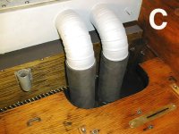 In PHOTO C the windchest is installed in the calliope. The new hoses are a nice tight fit and require no clamps to keep them in place.