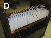 PHOTO D shows a front view of the windchest installed in the machine directly above the stack linkage which we installed last month.... PHOTO E.