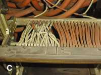 In order to correct this problem, the Clark Orchestra Roll Company produced a series of A rolls which were designed to play on the Tangley. When a note was to be sustained a bit, the length of the perforation on the music roll was slightly extended. Now, the music roll had 58 playing notes but the calliope only has 43 playing notes. To adjust to this, the top two playing notes on the calliope are not played automatically. This leaves 41 notes available for automatic playing on the machine from the 58 playing notes on the music roll. This problem is solved by octave coupling of some of the bass notes on the tracker bar. In PHOTO C you can see this coupling by means of using Ys in the tracker bar tubing. I made a careful diagram of this arrangement.