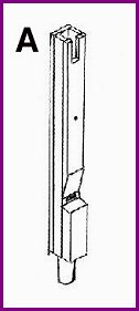 I decided to build the set of 14 melody flageolets next. As it turns out this may not have been the wisest choice since I had more problems with this set of pipes that I did with any of the others. FIGURE A is a sketch of a typical flageolet. It is of similar construction to an open flute with the addition of a nodal hole at about the mid-point of its length. The frequency at which a pipe sounds is determined by its length. The effect of the nodal hole is to cause the pipe to sound an octave higher than it would for that length but without the hole. The slot at the top of the pipe is for tuning. A brass plate in this slot is moved up or down to tune the pipe to the desired frequency by effectively changing the apparent length of the pipe. At first I was uncertain how this plate should be configured so that it could be adjusted. The method I finally used was to employ a small router to cut a rabbet in the front edge of the pipe sides before gluing on the front. The depth of this rabbet should be the same as the thickness of the brass plate. FIGURE B is a view looking down at the top of the pipe. It can be seen that after the front of the pipe is attached a groove is formed on each side of the pipe for the brass plate to slide into.
